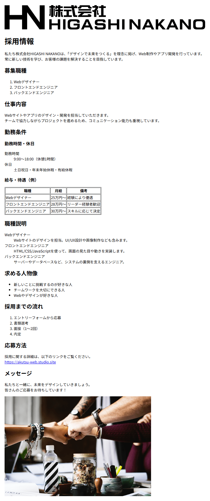 titleタグ「採用情報 – 株式会社HIGASHI NAKANO」