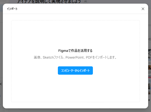 「コンピュータからインポート」ボタンをクリックしてFigファイルを選択すればインポート完了です。