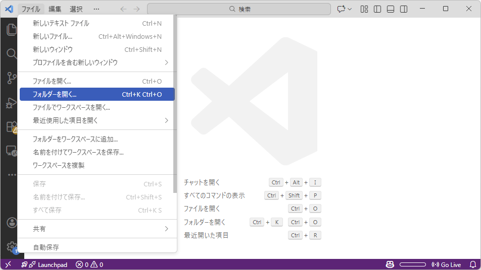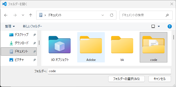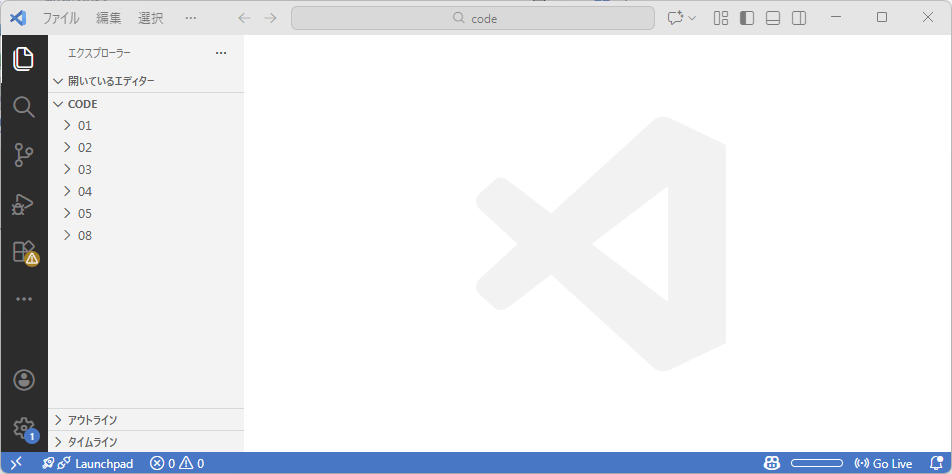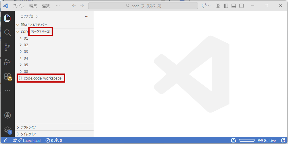 次回以降ワークスペースを開きたい時は、拡張子「.code-workspace」ファイルをダブルクリックします。