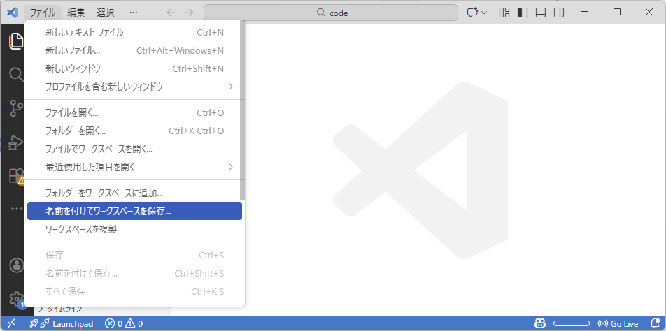 「ファイル」>「名前を付けてワークスペースを保存」を選択します。